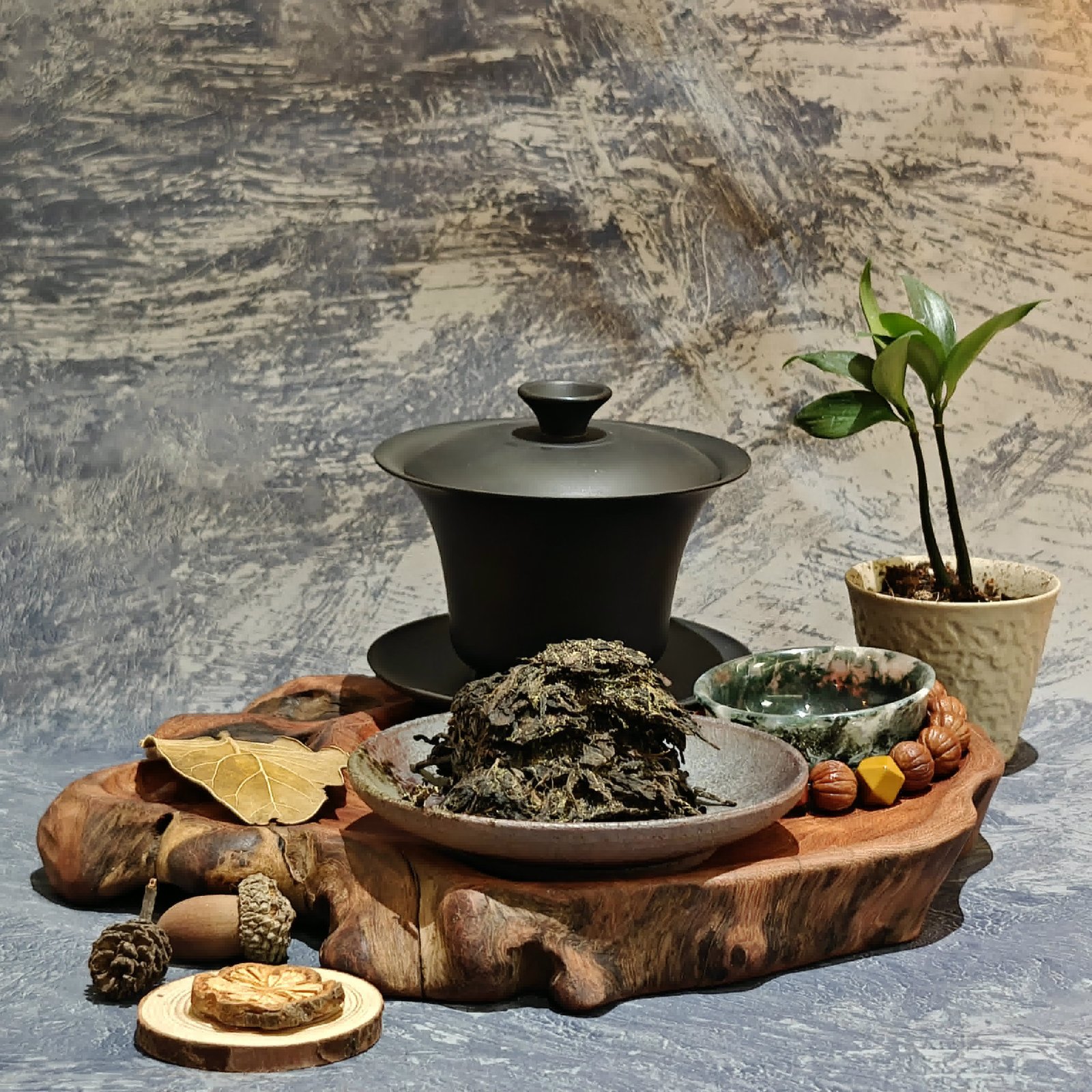 《菌语鎏金》 秦岭的云雾, 在茯砖里开出金色的花。 沸水唤醒时, 菌香与药香交织成经卷—— 那是茶马古道, 用千年驼铃, 摇落的星辰密码。