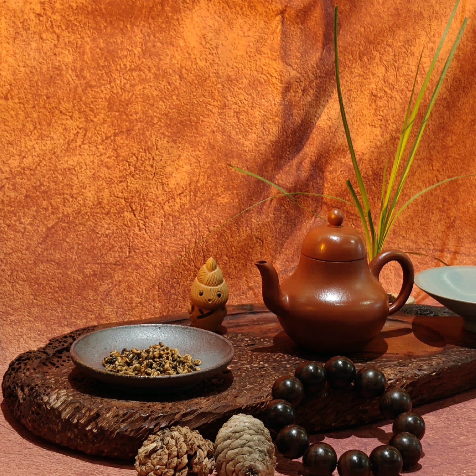《霞涡凝香》 滇南的暮云, 在掌心揉捻成金红螺钿。 沸水倾注时, 蜜糖与野莓香旋舞—— 那是茶人用夕阳, 将整座茶山的暖意, 都卷进了这枚 温柔的漩涡。