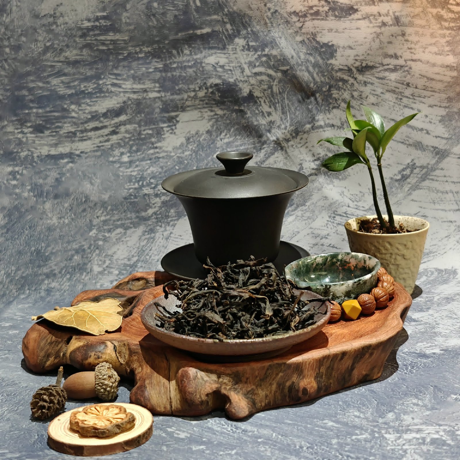 《山韵凝香》 乌岽山的云雾, 在百年老枞的枝头结出茶中香水。 沸水点化时, 每一片叶子都舒展成凤凰的羽毛, 啜饮间, 蜜兰香里藏着整座潮州的月光。