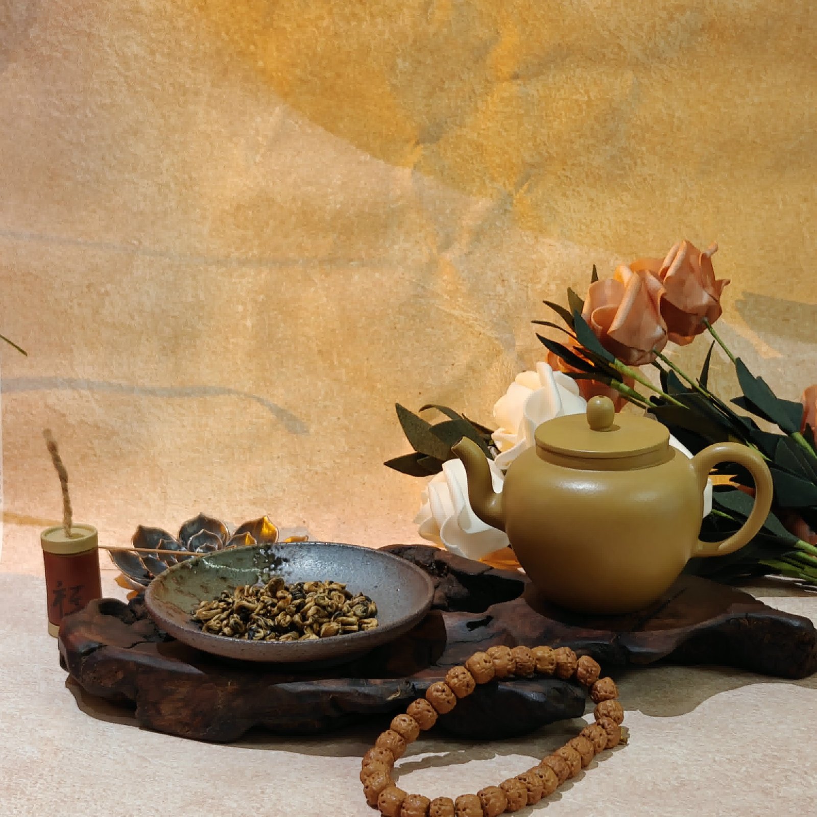 《霞涡凝香》 滇南的暮云, 在掌心揉捻成金红螺钿。 沸水倾注时, 蜜糖与野莓香旋舞—— 那是茶人用夕阳, 将整座茶山的暖意, 都卷进了这枚 温柔的漩涡。
